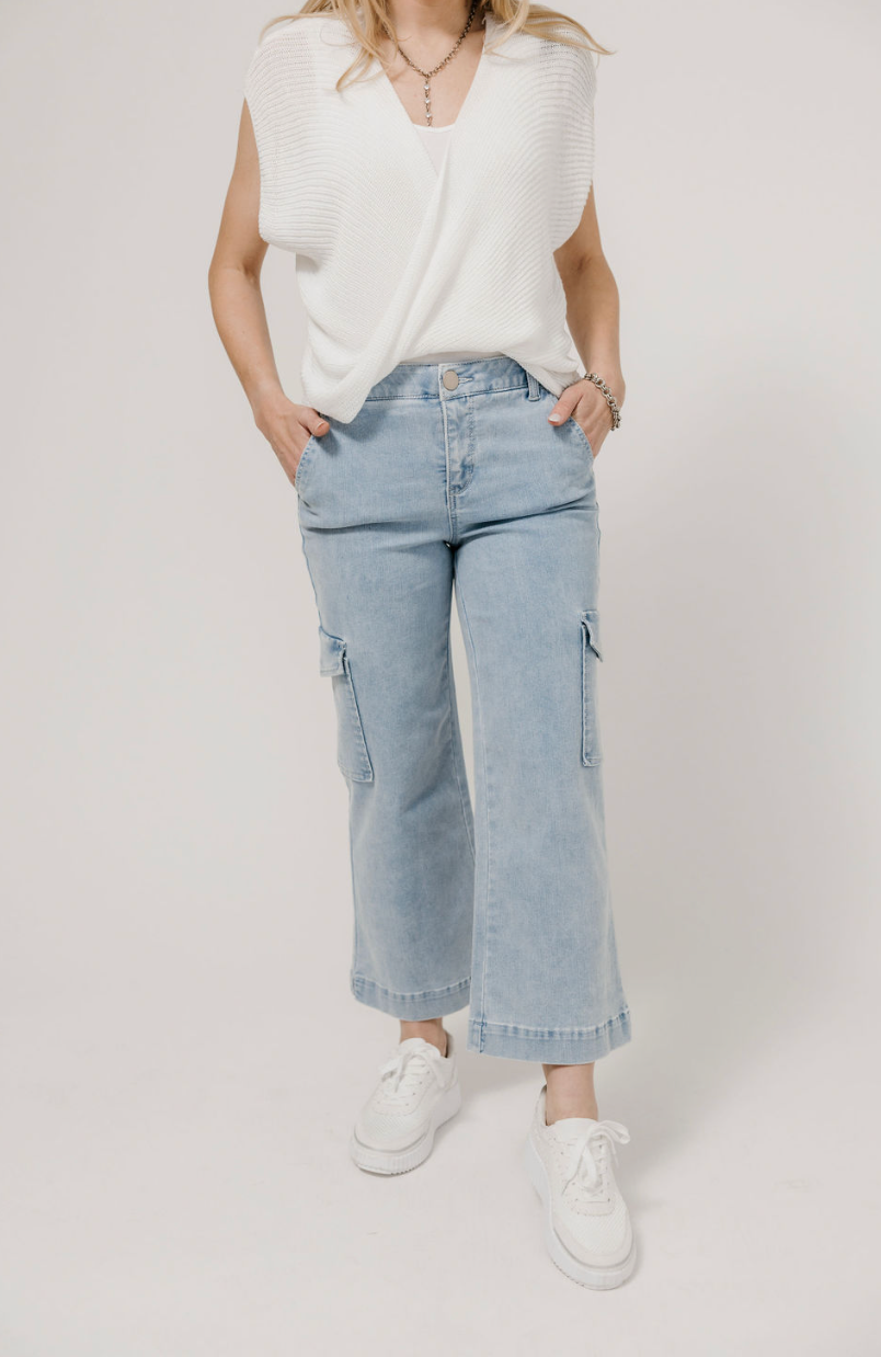 Mac and Me High Rise Cargo Wide Leg w/ Slit Hem - HQ