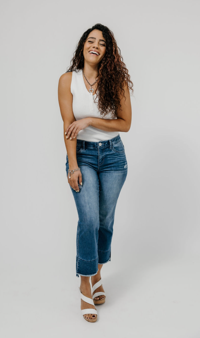 Mac and Me High Rise Cropped Itty Bitty Flare w/ Wide Finished Reverse Frayed Hem - HQ